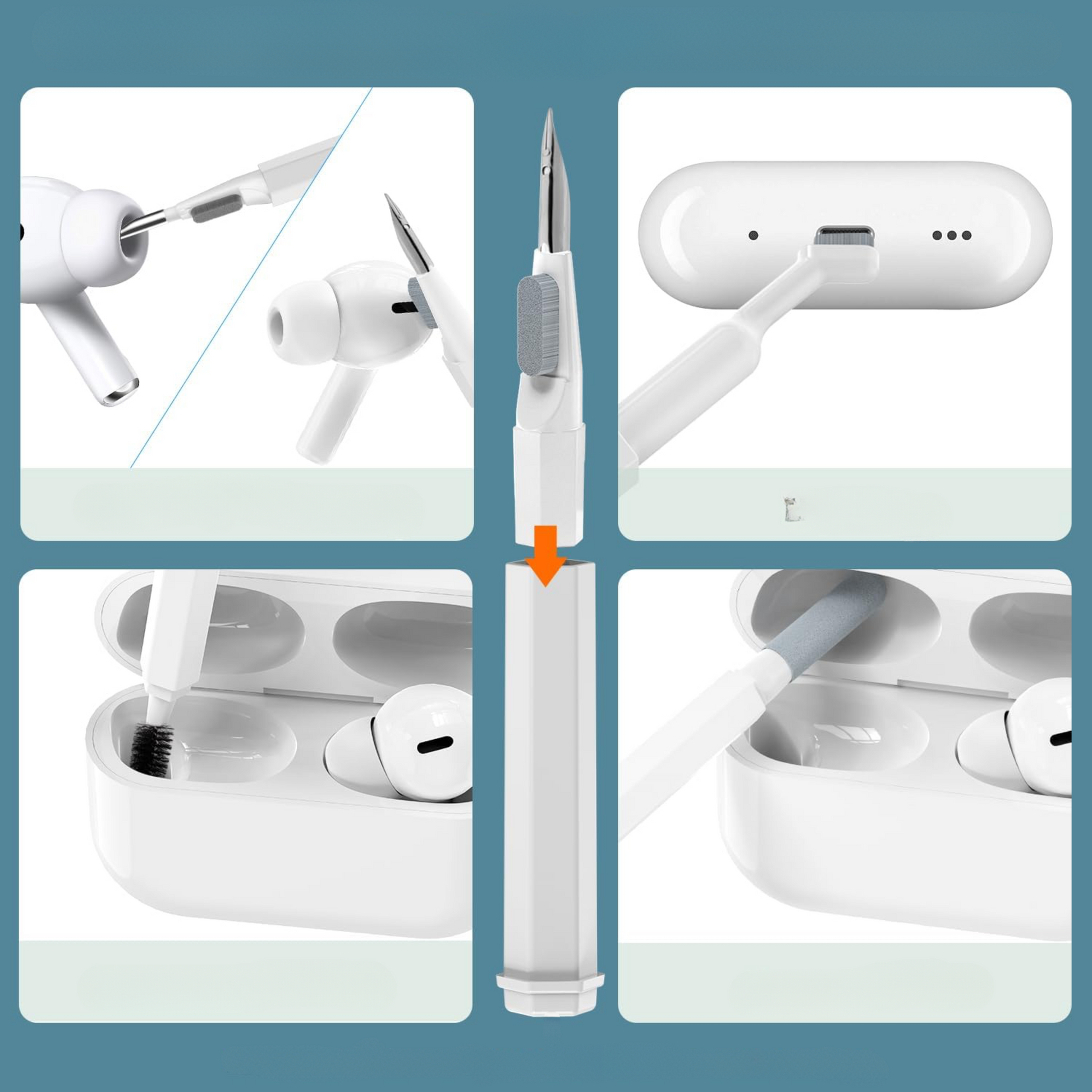 Pachetul de curățare Sparkkit™ este soluția inteligentă și completă pentru curățarea SnapStick™-ului tău, a tastaturii, căștilor, laptopului și a altor electronice. Cu 21 de unelte practice – inclusiv vârfuri din silicon, cârpe din flanel, extragătoare de taste, perii și bureței – poți îndepărta cu ușurință praful, murdăria și petele chiar și din cele mai mici colțuri.